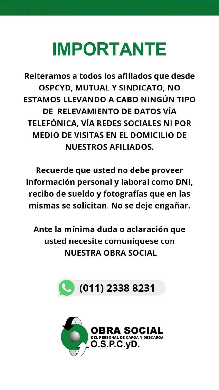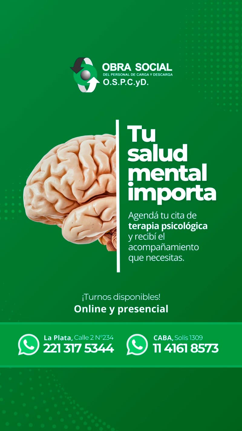 La Obra Social del Personal de Carga y Descarga informa a sus afiliados la actualización de los números de contacto para el área de Salud Mental. A continuación, se detallan los canales disponibles: Central de turnos (MHM) Atención de lunes a viernes, de 9:00 a 17:00 hs. Requiere derivación de OSPCyD. 7700-3673 Emergencias – Atención las 24 horas 0800-555-2223 Recomendamos a todos los afiliados utilizar estos canales para una atención más ágil y eficiente.